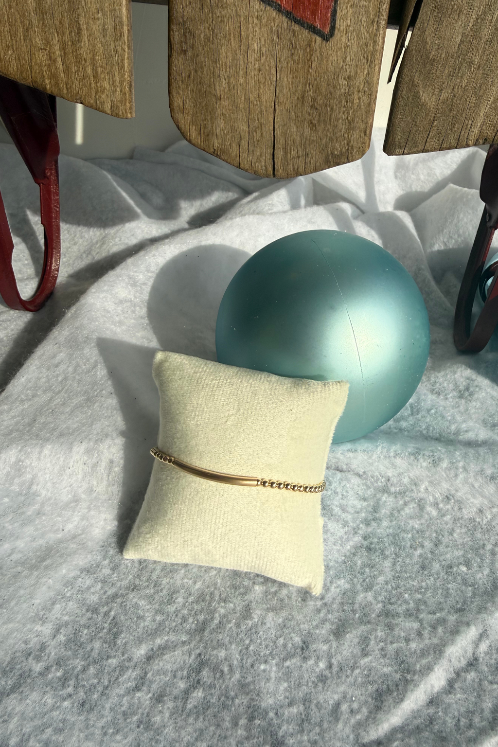 jamie is the new girl, featuring the classic 3mm gold-filled beads and a long bar bead as its centerpiece, make the perfect statement