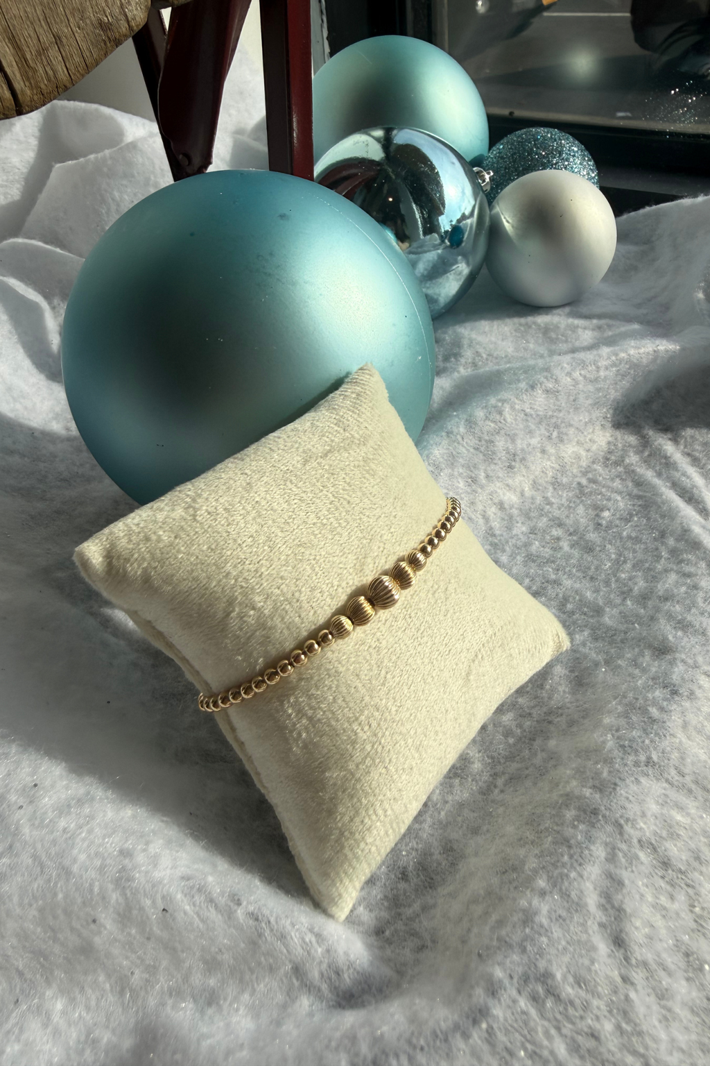 the new it girl: Victoria. featuring the classic 3mm beads and a centerpice of different sized striped beads, it's perfect for any stack.