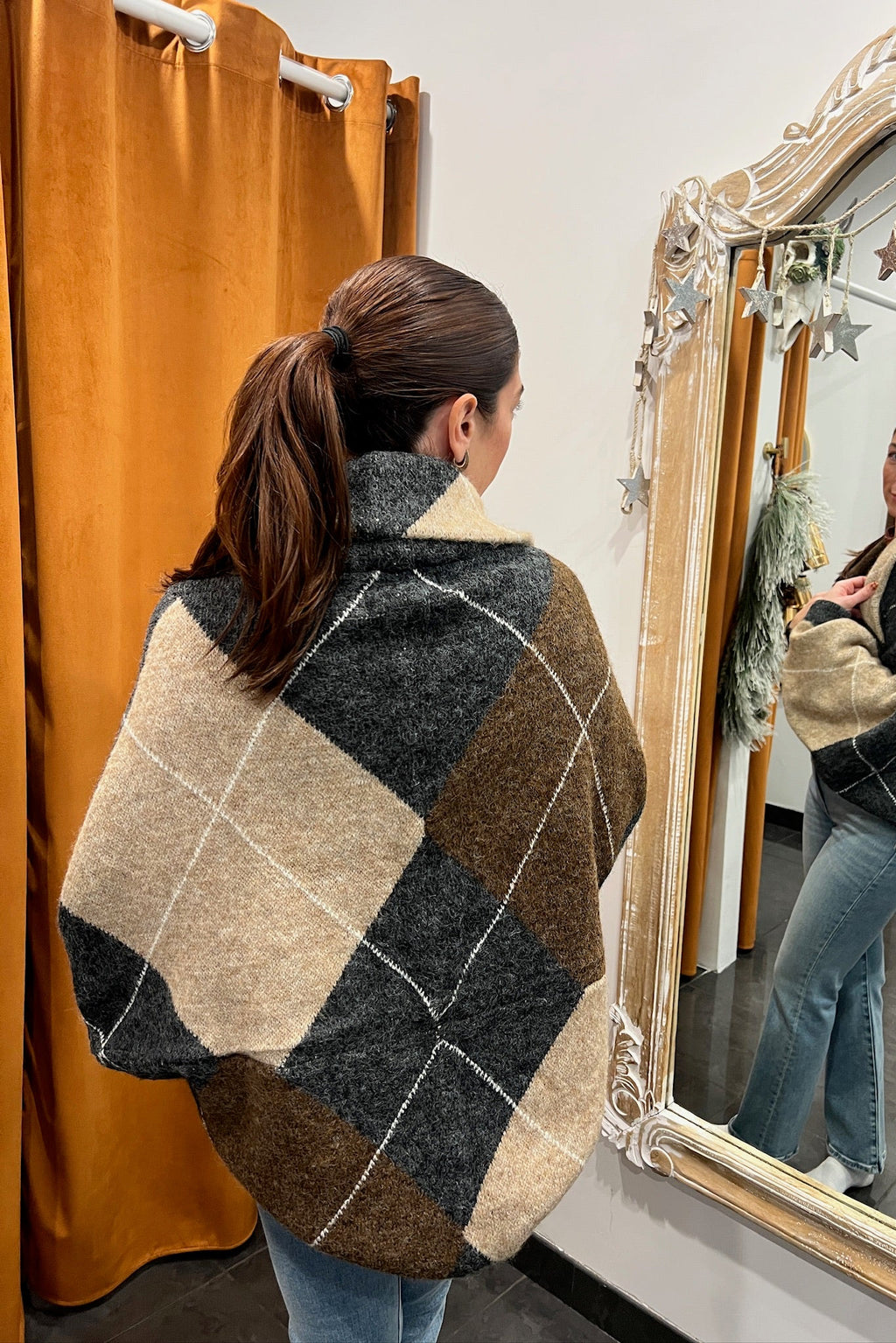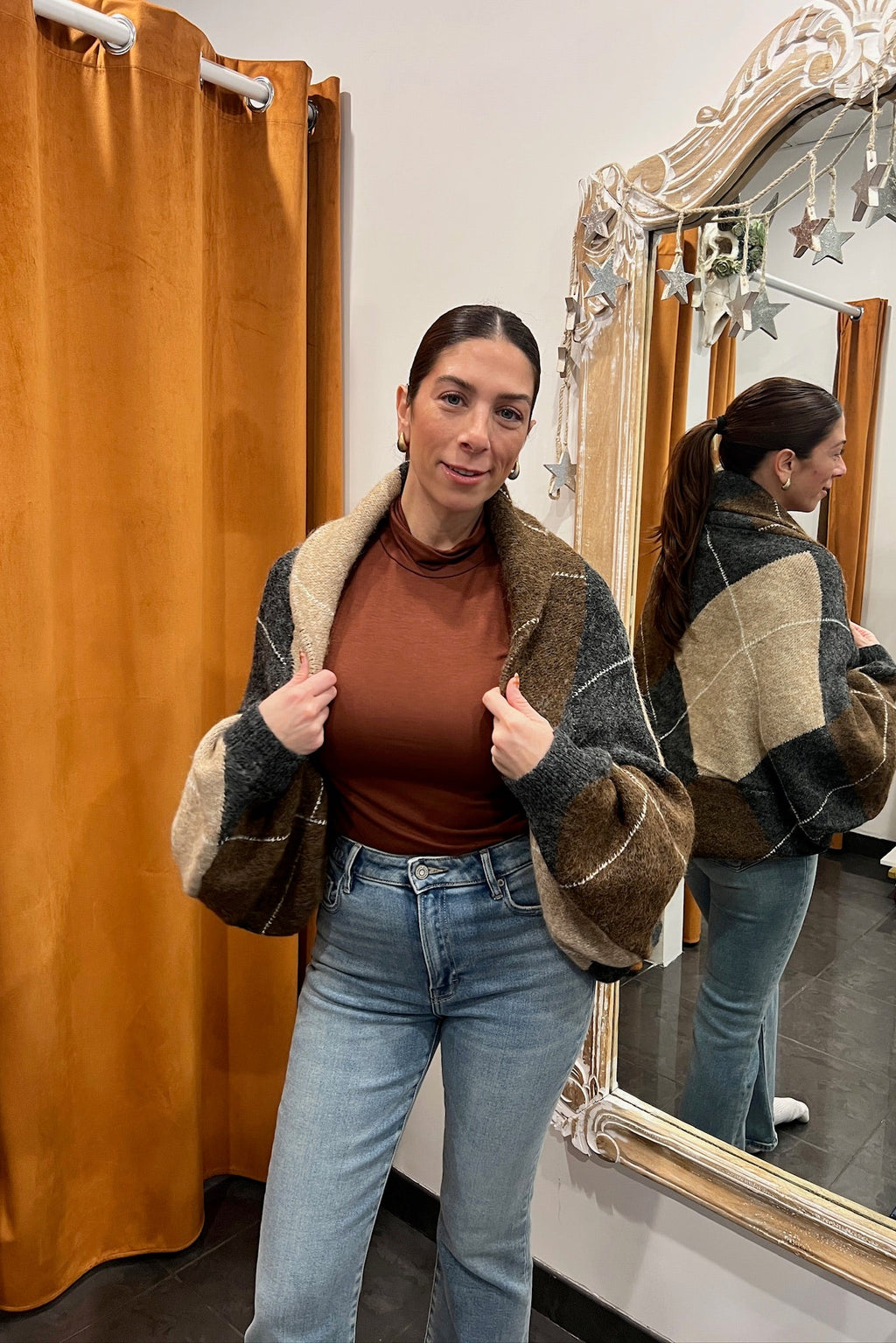 wrap yourself in this argyle jacquard-knit shrug cardigan.