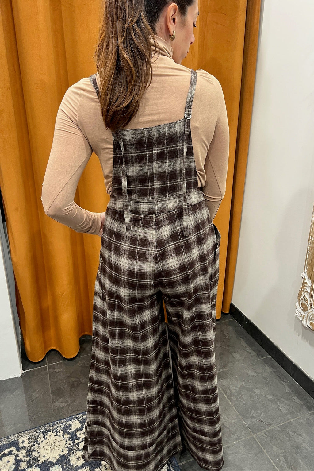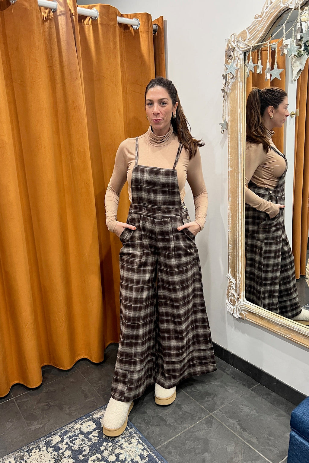 step into cozy comfort with this plaid flannel wide-leg overall jumpsuit—the ultimate throwback piece that's equal parts nostalgic and effortlessly cool.