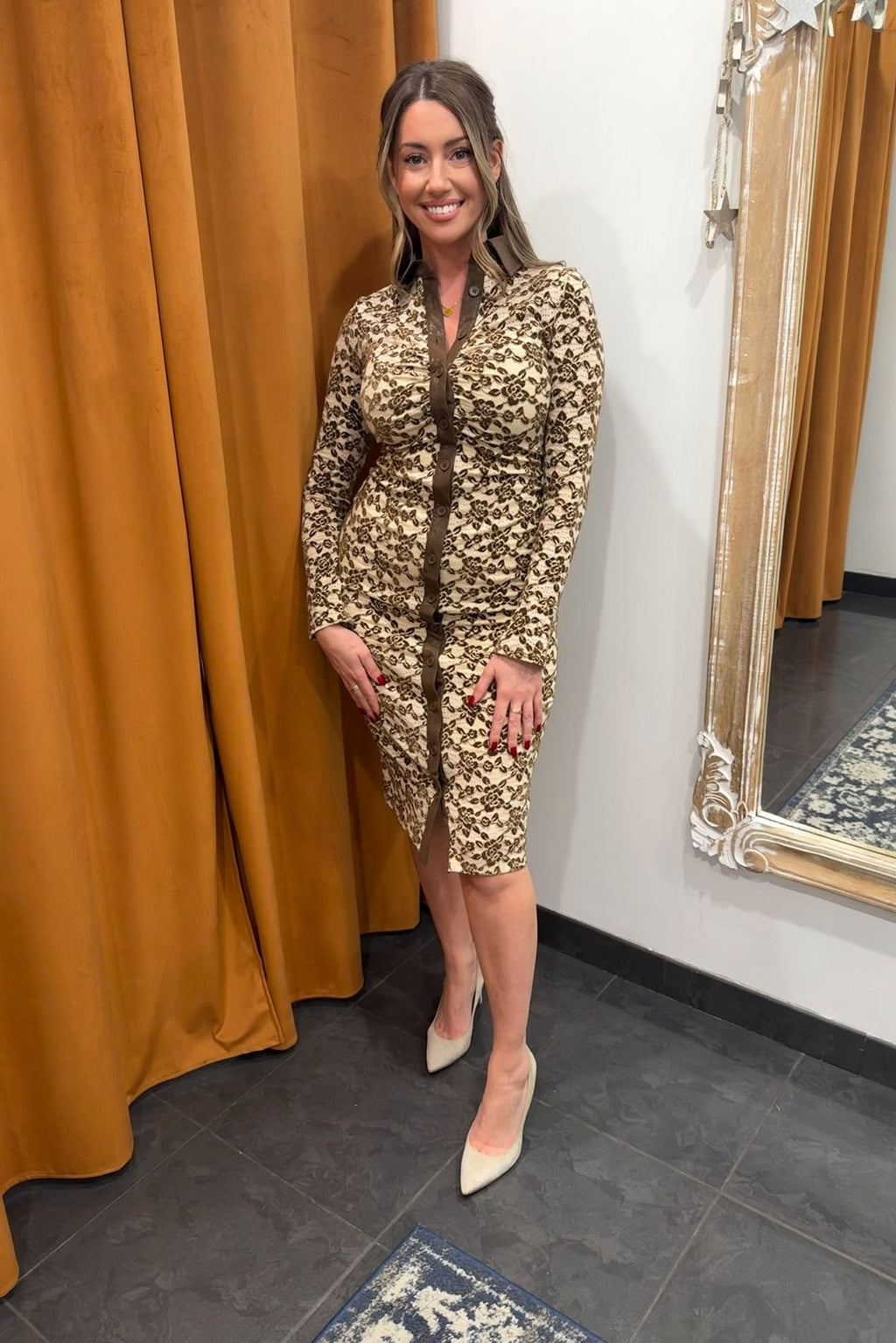 its delicate embroidery adds a whimsical touch, while the midi length offers a perfect balance of comfort and charm - and we cant forget the faux leather detailing making it super luxe. dress it up or down, this dress brings playful elegance to every moment.